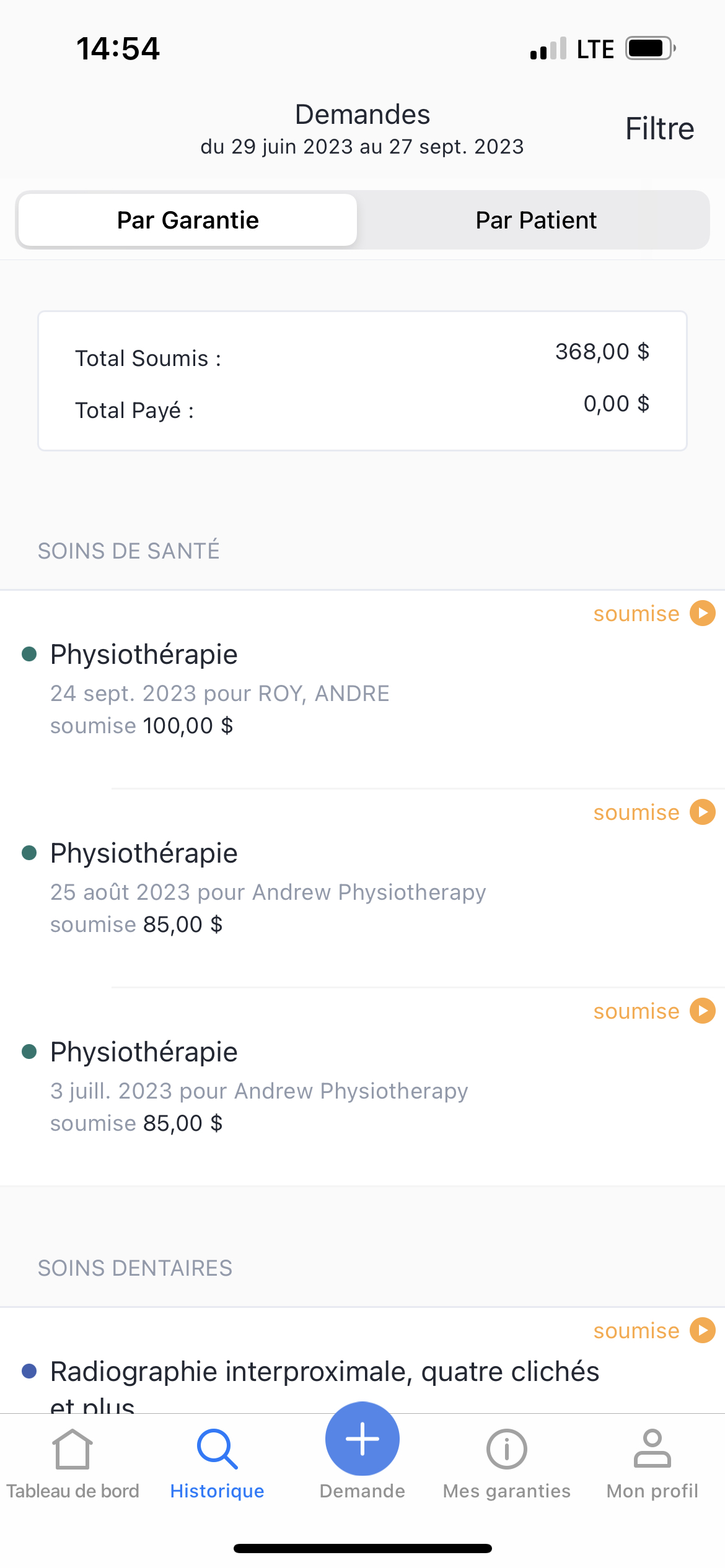 Appuyez sur Soumettre pour envoyer votre demande au compte de gestion santé.