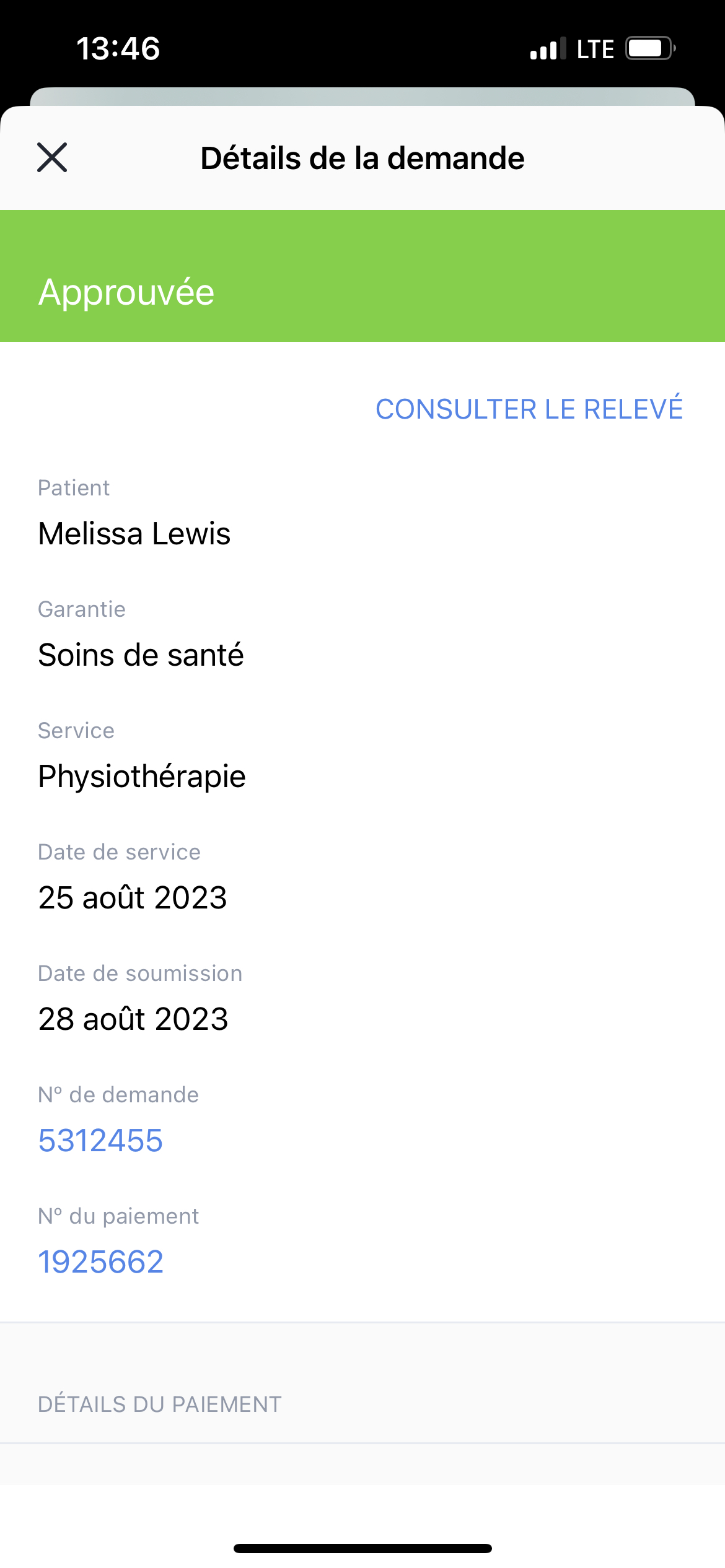 Lorsque votre demande sera soumise pour évaluation, une fenêtre contextuelle apparaîtra au bas de votre écran. Appuyez sur Consulter les détails pour obtenir une vue détaillée de votre demande.