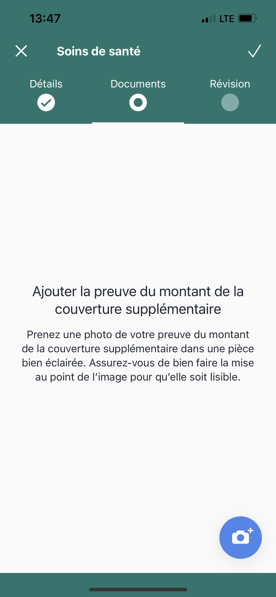 Appuyez sur Suivant et ajoutez le relevé de votre couverture supplémentaire.